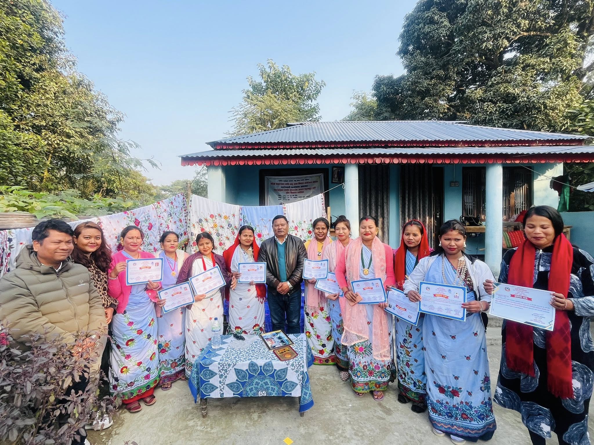 बिराटनगर। दुहबी नगरपालिका लघु उद्यम विकास शाखाको आयोजनामा सञ्चालन गरिएको कपडामा अचरा फुलबुट्टा भर्ने १ महिने स्तरवृद्धि तालिम आज बिहीबार सम्पन्न भएको छ। दुहबी नगरपालिका–११, तनमुनाका महिलाहरूलाई लक्षित गरी सञ्चालन गरिएको उक्त तालिममा ११ जना महिलाको सहभागिता रहेको थियो।