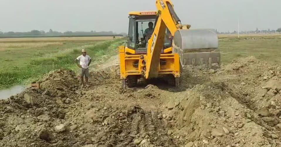 सो क्रममा डोजर प्रयोग गरी जग्गामा खाल्डो खन्ने तथा पर्खाल निर्माण गर्ने काम सुरु गरिएको छ।